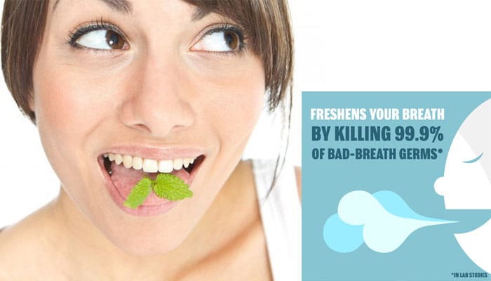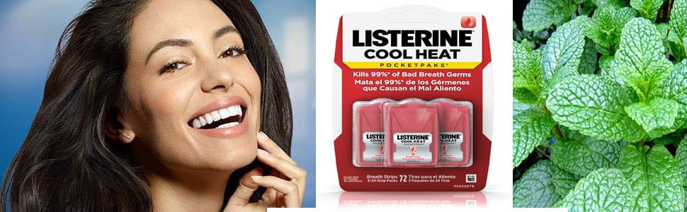 Làm thơm mát hơi thở của bạn với Listerine Cool Heat mùi quế  the mát, bằng cách giết chết 99% vi trùng gây hôi miệng.