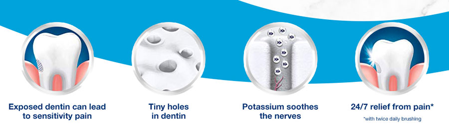 • Thành phần được chứng minh lâm sàng làm giảm nhạy cảm đau, bảo vệ độ nhạy cảm 24/7