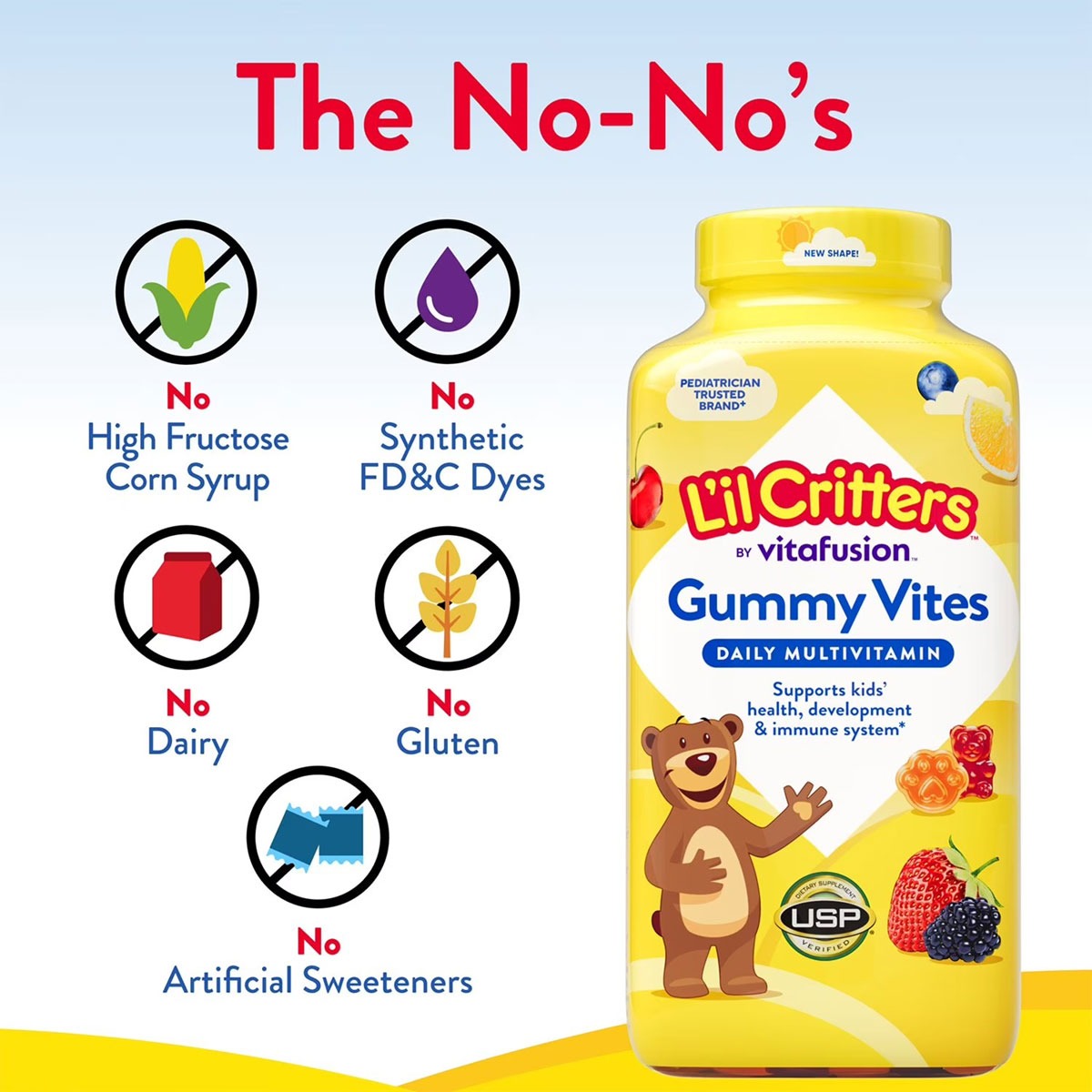 Kẹo gấu dẻo Gummy Vites là một lựa chọn tốt để bổ sung vitamin và khoáng chất cho trẻ em. Tuy nhiên, để đảm bảo sức khỏe tối ưu cho trẻ, bạn nên kết hợp việc cho trẻ sử dụng sản phẩm này với một chế độ ăn uống lành mạnh và lối sống tích cực.Thương hiệu uy tín: L’il Critters là một thương hiệu nổi tiếng của Mỹ, chuyên sản xuất các sản phẩm dinh dưỡng cho trẻ em.