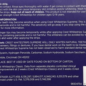 Thành phần Miếng dán trắng răng Crest 3D White SUPREME Professional