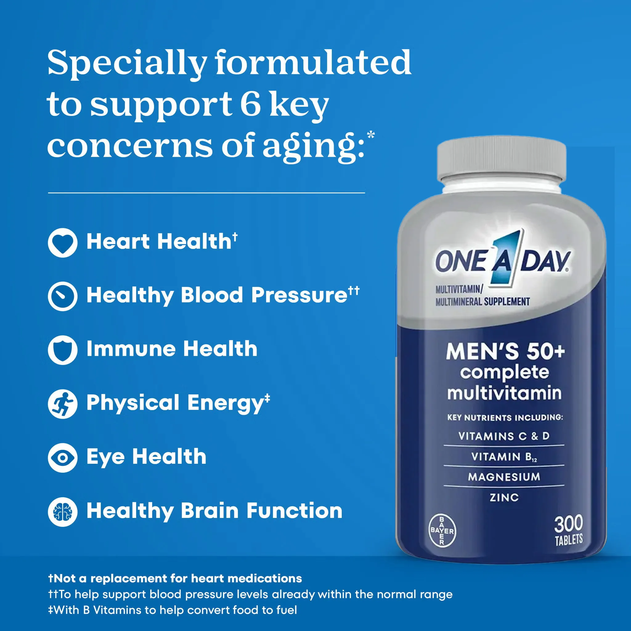 One A Day Men’s 50+ Vitamin tổng hợp hỗ trợ sức khỏe tim mạch, tăng cường sức khỏe xương khớp, nâng cao hệ miễn dịch, cải thiện chức năng não, giảm mệt mỏi, tăng cường năng lượng, chống oxy hóa, cải thiện thị lực.