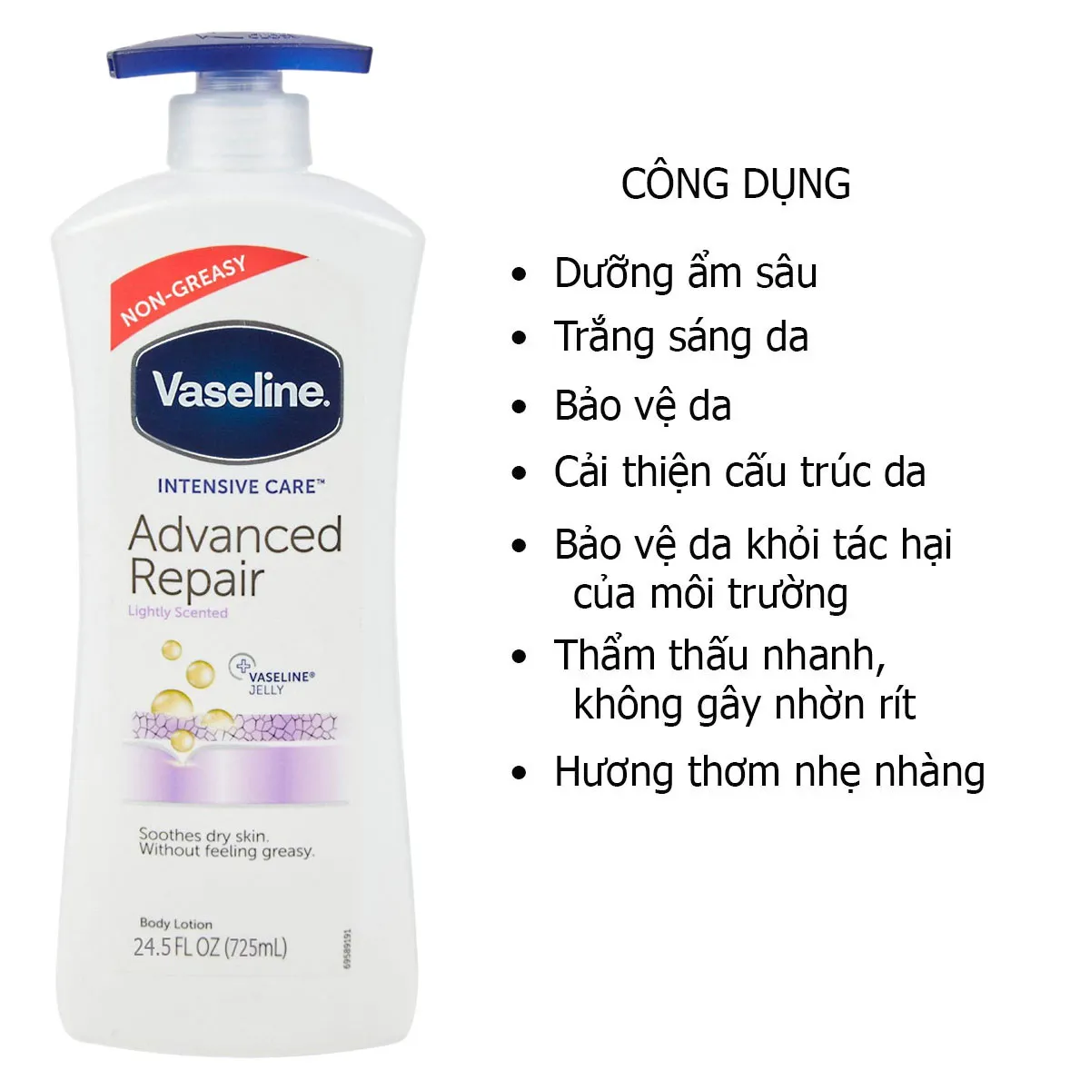 Công dụng Sữa vaseline dưỡng thể trắng da Advanced Repair 725ml