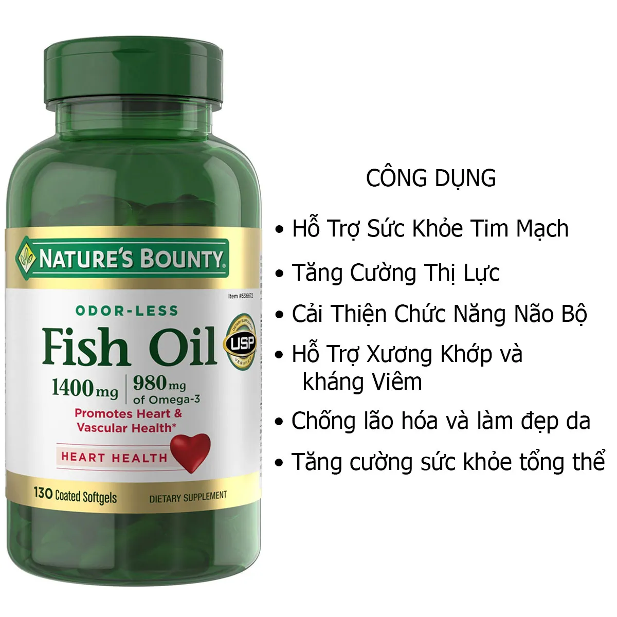 Công dụng Viên Fish Oil 1400mg omega 3 980mg Nature’s Bounty của Mỹ