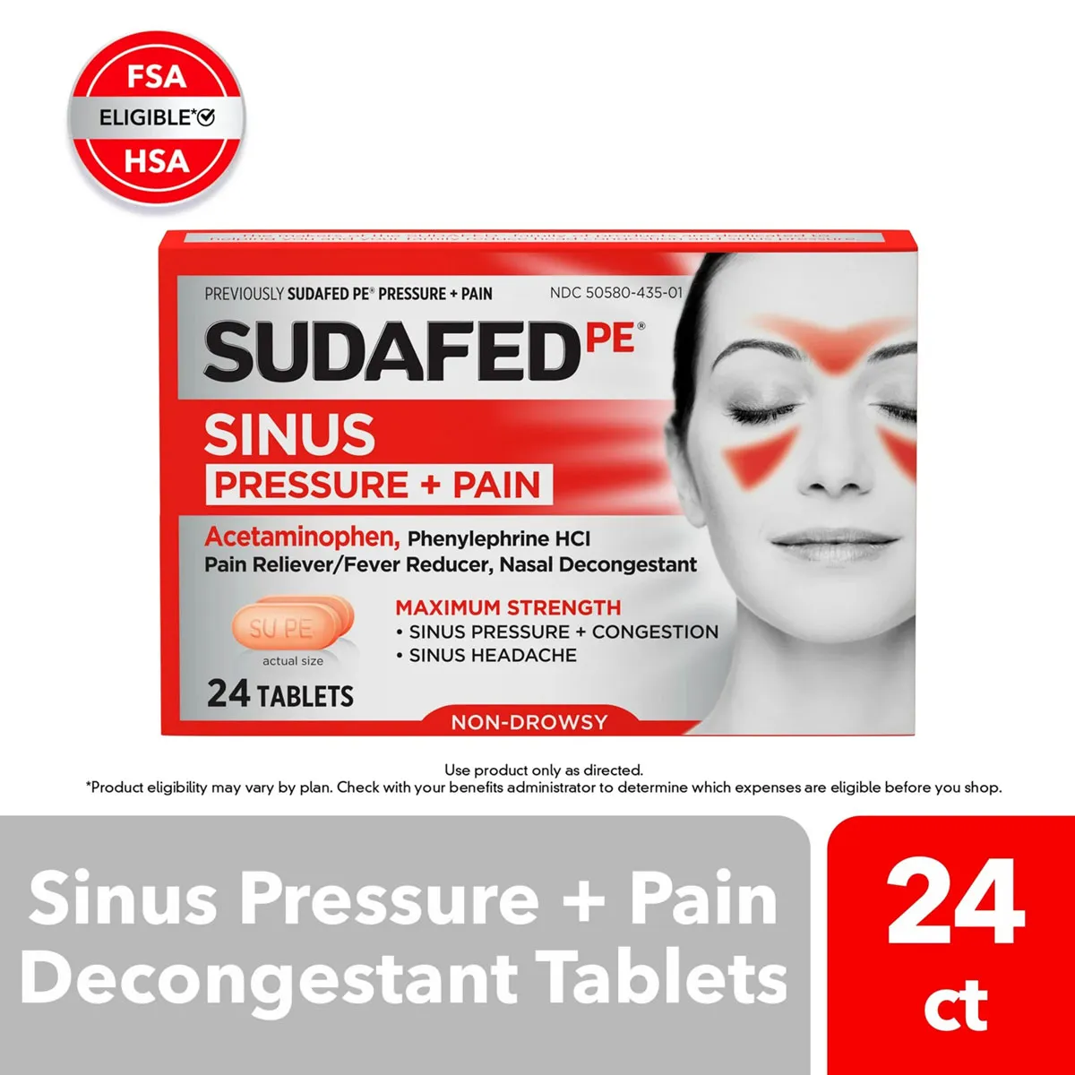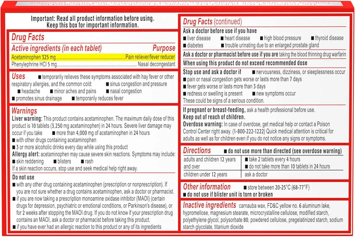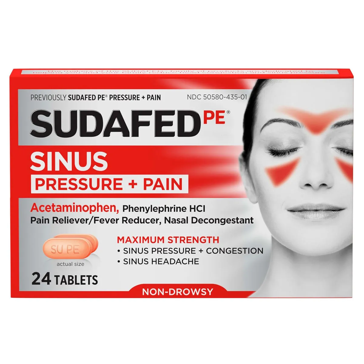 Thành phần Viên hỗ trợ trị viêm xoang Sudafed PE Sinus 24 viên của Mỹ
