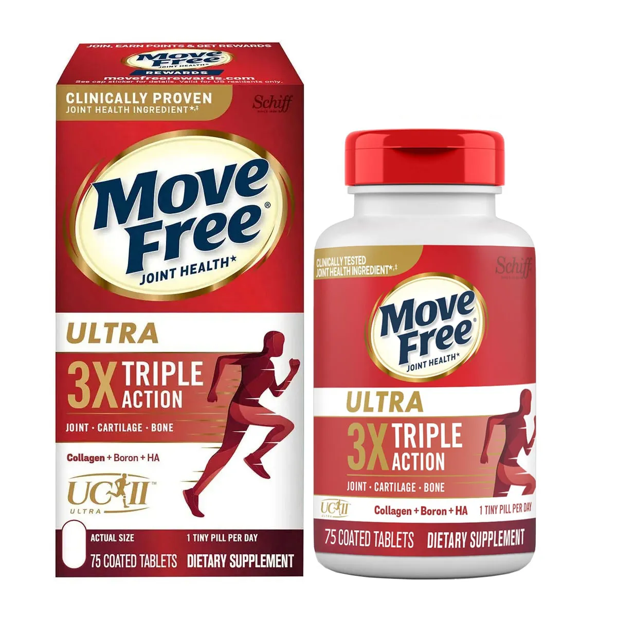 Schiff Move Free Ultra 3X Triple Action là một loại thực phẩm chức năng được sản xuất tại Mỹ, được thiết kế để hỗ trợ sức khỏe của khớp, sụn và xương. Sản phẩm này nổi bật với công thức kết hợp ba thành phần chính trong một viên uống nhỏ gọn, tiện lợi khi sử dụng.