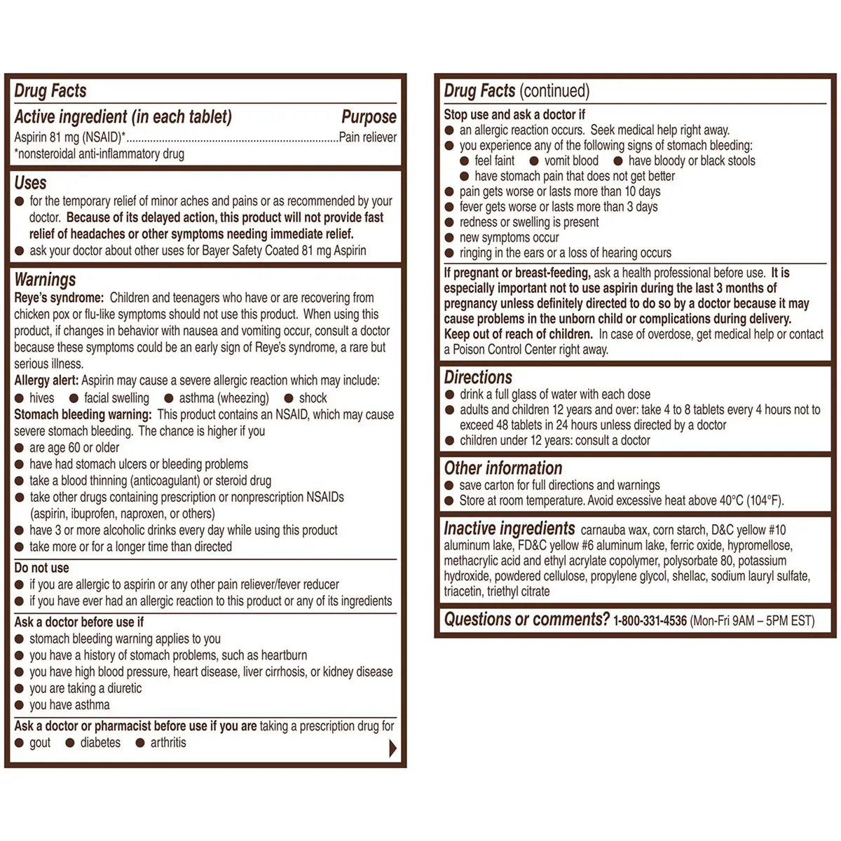 Viên uống Bayer Low Dose Aspirin 81mg 400 viên của Mỹ